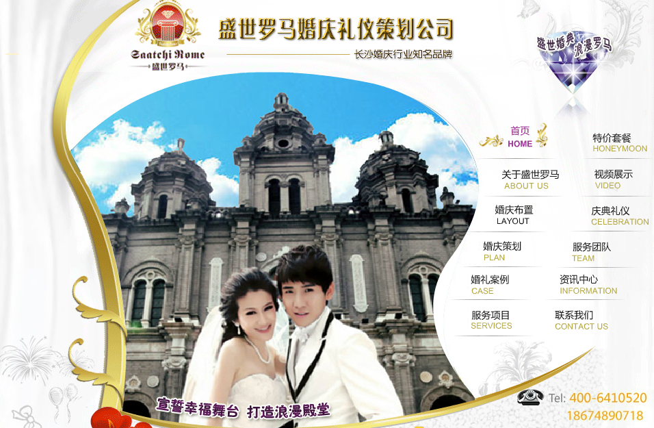 最新、最好的婚礼策划,配以最时尚、新意的会场布置及花艺,电影级的影片摄制,再加最专业的婚礼服务项目和完美无缺的执行与服务,使得您可安心将婚礼交给我们,用心去感受那份专属您的一生一次的人生最珍贵的喜悦、浪漫与感动。结婚,是人一生中最重要的里程碑;而婚礼庆典,更是生命中不可或缺的一个神圣仪式。愿您美满的婚姻从圆满的婚礼开始,幸福的生活从盛世罗马婚庆——开始……